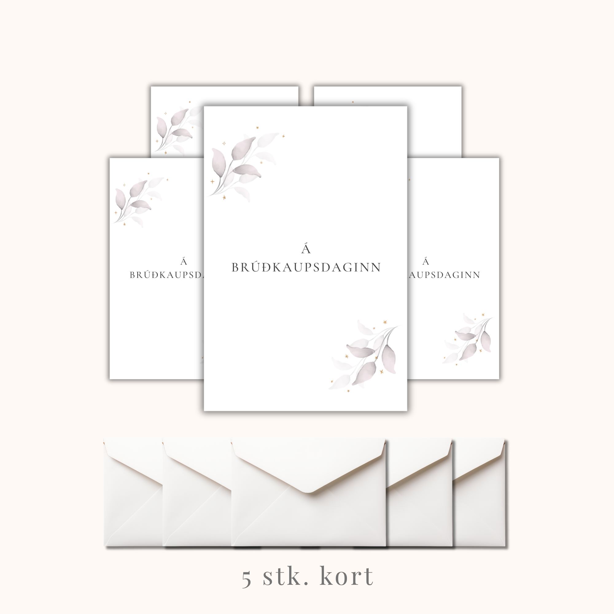 Kortið er stílhreint og fallegt, ætlað til að fagna ást, gleði og nýjum kafla í lífi brúðhjóna. Einföld og falleg kveðja getur gert stóra stund enn eftirminnilegri.