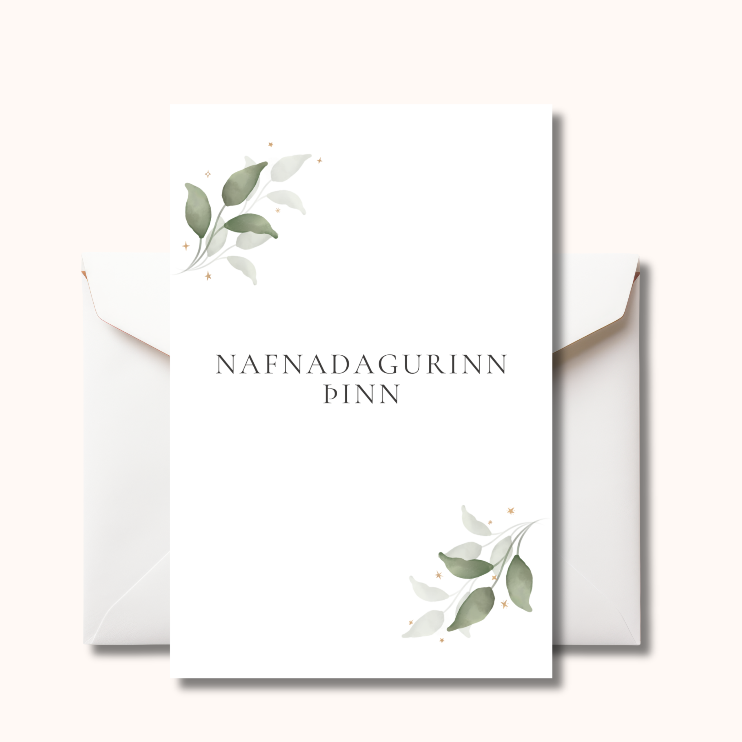 Kortið er stílhreint og fallegt, fullkomið fyrir persónulega kveðju við nafndaga. Það fangar hlýju og gleði á einfaldan og fallegan hátt og hentar vel þegar þú vilt gleðja einhvern á þessum sérstaka degi.
